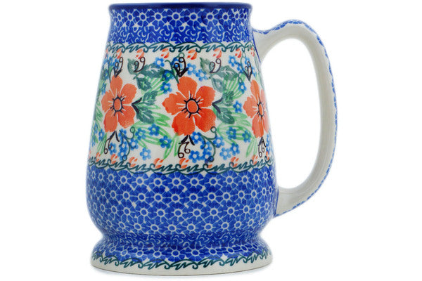This Polish Pottery 34 oz Beer Mug - Brilliant Pansy is handmade and handpainted by the Ceramika Artystyczna factory in Boleslawiec, Poland.