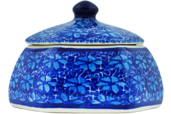 This Polish Pottery 4" Jar with Lid - Deep Into The Blue Sea is handmade and handpainted by the Ceramika Artystyczna factory in Boleslawiec, Poland.