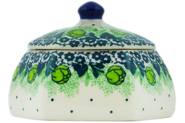 This Polish Pottery 4" Jar with Lid - Green Flora is handmade and handpainted by the Ceramika Artystyczna factory in Boleslawiec, Poland.