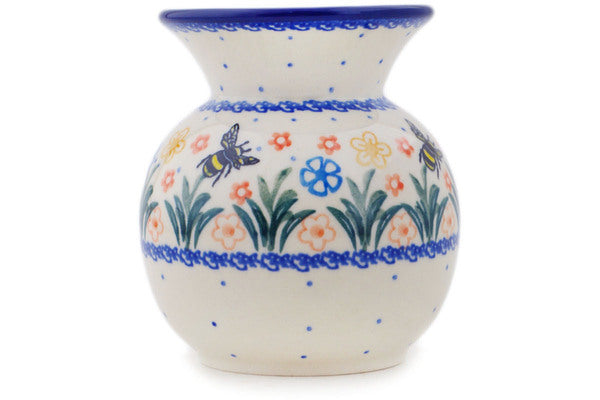 This Polish Pottery 4" Vase - Spring Bee is handmade and handpainted by the Ceramika Artystyczna factory in Boleslawiec, Poland.