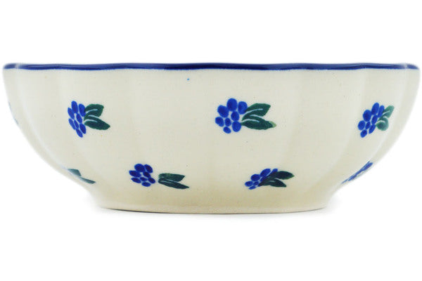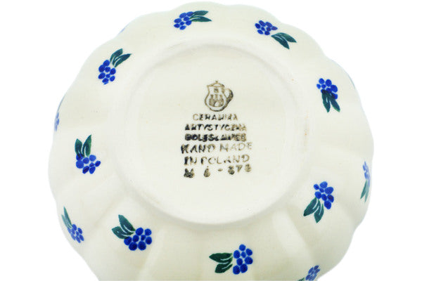 This Polish Pottery 5" Scalloped Fluted Bowl - Blue Carnation is handmade and handpainted by the Ceramika Artystyczna factory in Boleslawiec, Poland.