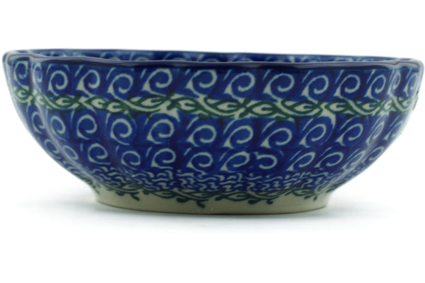 This Polish Pottery 5" Scalloped Fluted Bowl - Blue Butterfly Brigade is handmade and handpainted by the Ceramika Artystyczna factory in Boleslawiec, Poland.