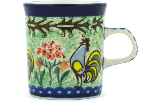 This Polish Pottery 5 oz Mug - Rooster Dance is handmade and handpainted by the Ceramika Artystyczna factory in Boleslawiec, Poland.