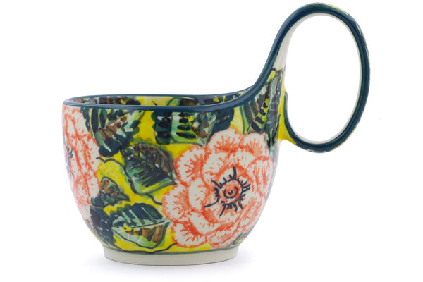 This Polish Pottery 6" Bowl with Loop-Handle - Orange Peonies is handmade and handpainted by the Ceramika Artystyczna factory in Boleslawiec, Poland.
