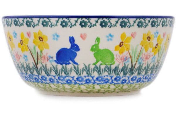 This Polish Pottery 6" Bowl - Hopping In Love is handmade and handpainted by the Ceramika Artystyczna factory in Boleslawiec, Poland.