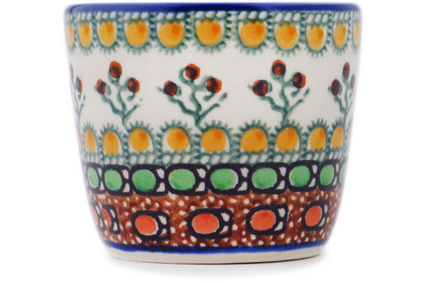 This Polish Pottery 6 oz Tumbler - Cranberry Medley is handmade and handpainted by the Ceramika Artystyczna factory in Boleslawiec, Poland.