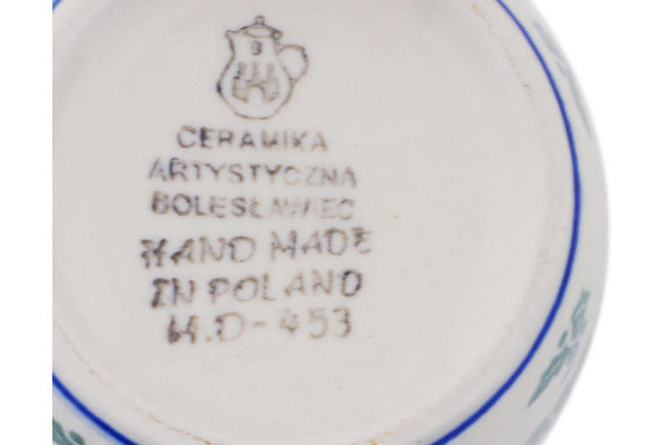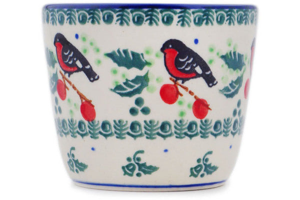 This Polish Pottery 6 oz Tumbler - Holly Robin is handmade and handpainted by the Ceramika Artystyczna factory in Boleslawiec, Poland.