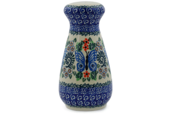 This Polish Pottery 6" Salt Shaker - Blue Butterfly Brigade is handmade and handpainted by the Ceramika Artystyczna factory in Boleslawiec, Poland.