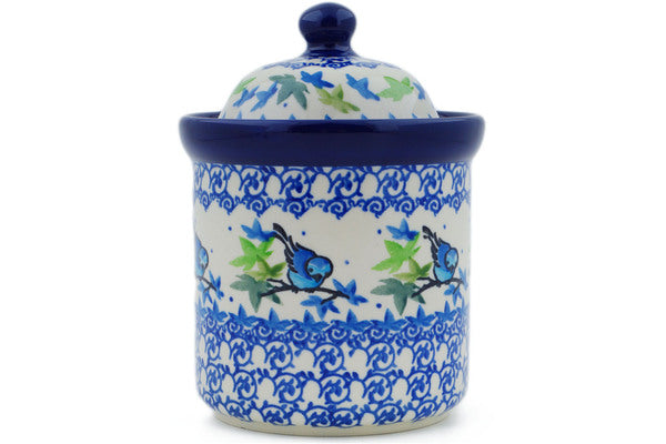 This Polish Pottery 6" Jar with Lid - Birdy Babies is handmade and handpainted by the Ceramika Artystyczna factory in Boleslawiec, Poland.