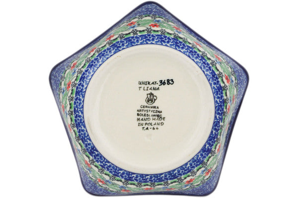 This Polish Pottery 7" Star Shaped Bowl - White Lily Meadow is handmade and handpainted by the Ceramika Artystyczna factory in Boleslawiec, Poland.