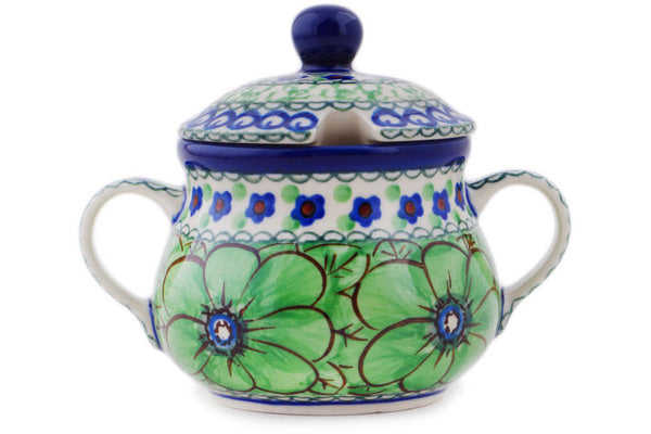 This Polish Pottery 7 oz Sugar Bowl - Green Pansies is handmade and handpainted by the Ceramika Artystyczna factory in Boleslawiec, Poland.