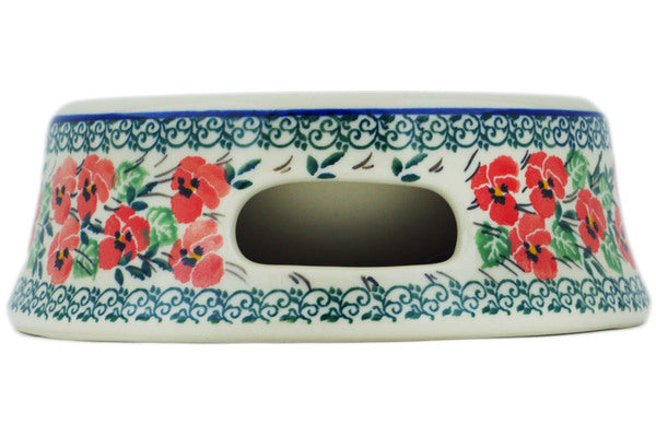 This Polish Pottery 7" Pet Bowl - Red Pansy is handmade and handpainted by the Ceramika Artystyczna factory in Boleslawiec, Poland.