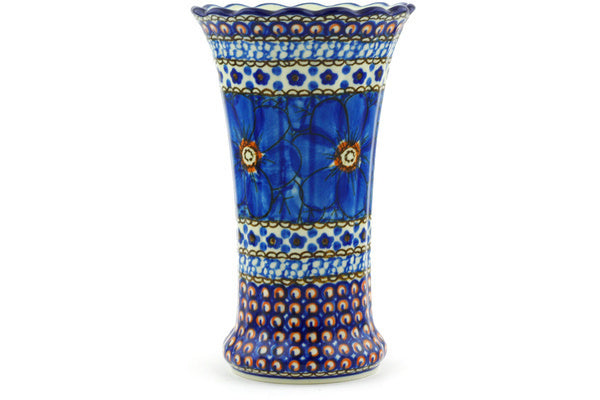 This Polish Pottery 7" Vase - Cobalt Poppies is handmade and handpainted by the Ceramika Artystyczna factory in Boleslawiec, Poland.