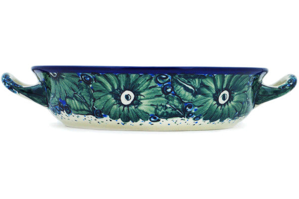 This Polish Pottery 8" Round Baker with Handles - Bold Poppies is handmade and handpainted by the Ceramika Artystyczna factory in Boleslawiec, Poland.