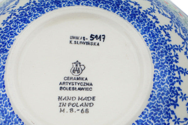 This Polish Pottery 9" Bowl - Free Flock is handmade and handpainted by the Ceramika Artystyczna factory in Boleslawiec, Poland.