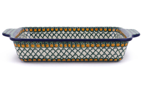 This Polish Pottery 11" Rectangular Baker with Handles - Tranquility is handmade and handpainted by the Ceramika Artystyczna factory in Boleslawiec, Poland.