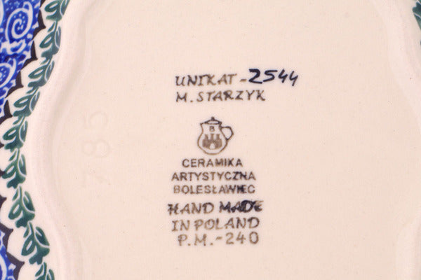 This Polish Pottery 9" Platter - Pansy Twins is handmade and handpainted by the Ceramika Artystyczna factory in Boleslawiec, Poland.