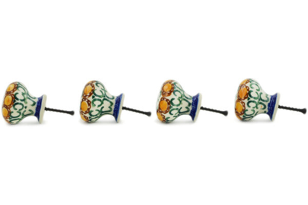Ceramika Artystyczna factory stamp | Polish Pottery HouseThis Polish Pottery 1" Set of 4 Drawer Pull Knobs - Blue Leaves is handmade and handpainted by the Ceramika Artystyczna factory in Boleslawiec, Poland.