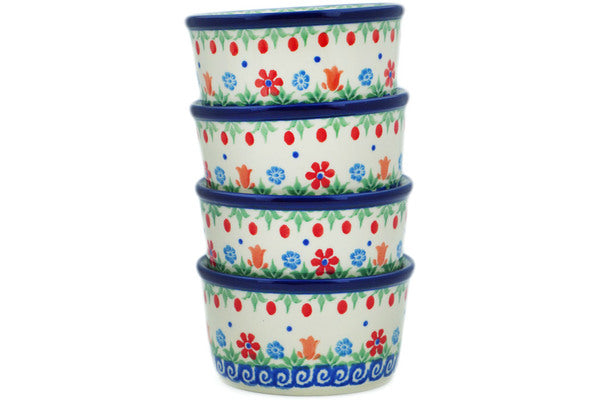 This Polish Pottery 4" Set of 4 Bowls - Babcia's Garden is handmade and handpainted by the Ceramika Artystyczna factory in Boleslawiec, Poland.
