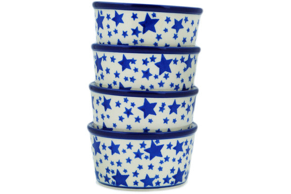 This Polish Pottery 4" Set of 4 Bowls - Starlight is handmade and handpainted by the Ceramika Artystyczna factory in Boleslawiec, Poland.