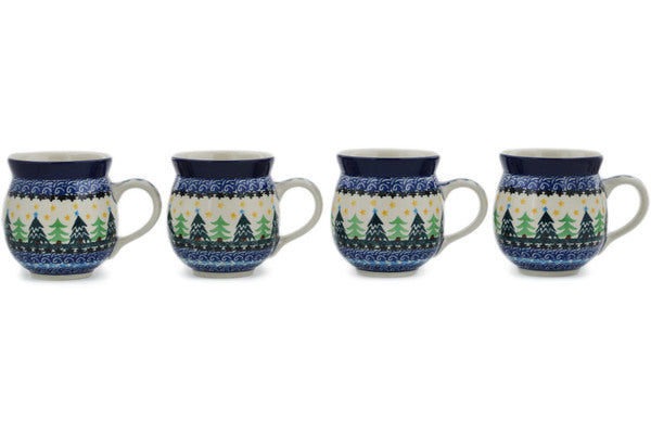 This Polish Pottery 12 oz Set of 4 Mugs - Christmas Evergreen is handmade and handpainted by the Ceramika Artystyczna factory in Boleslawiec, Poland.