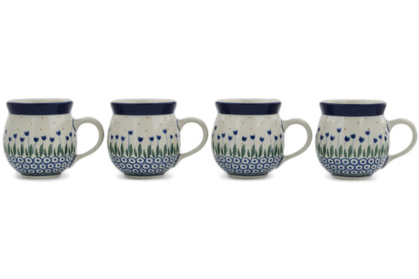 This Polish Pottery 12 oz Set of 4 Mugs - Water Tulip is handmade and handpainted by the Ceramika Artystyczna factory in Boleslawiec, Poland.