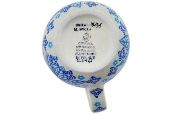 This Polish Pottery 7 oz Creamer - Blue Poinsettia is handmade and handpainted by the Ceramika Artystyczna factory in Boleslawiec, Poland.
