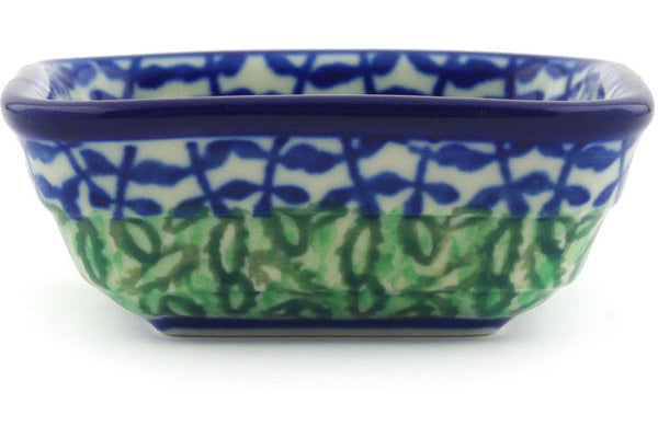 This Polish Pottery 3" Square Bowl - Cactus is handmade and handpainted by the Ceramika Artystyczna factory in Boleslawiec, Poland.