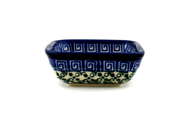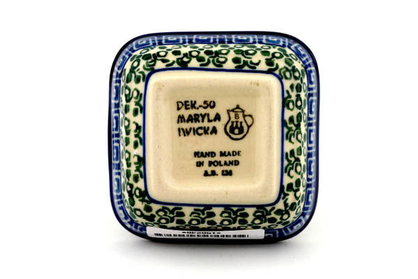 This Polish Pottery 3" Square Bowl - Grecian Sea is handmade and handpainted by the Ceramika Artystyczna factory in Boleslawiec, Poland.