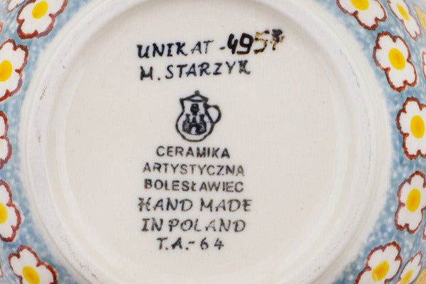 This Polish Pottery 5" Bowl - Popcorn Daisies is handmade and handpainted by the Ceramika Artystyczna factory in Boleslawiec, Poland.