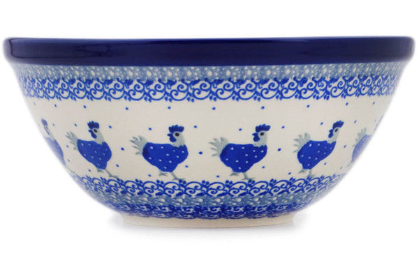 This Polish Pottery 8" Bowl - Cobalt Hen is handmade and handpainted by the Ceramika Artystyczna factory in Boleslawiec, Poland.