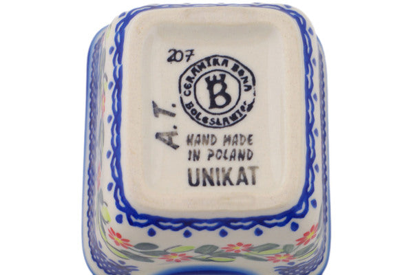 This Polish Pottery 3" Sugar Packet Holder - Elegant Garland is handmade and handpainted by the Ceramika Bona factory in Boleslawiec, Poland.
