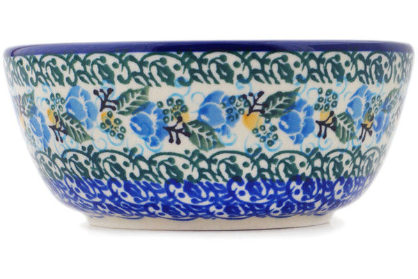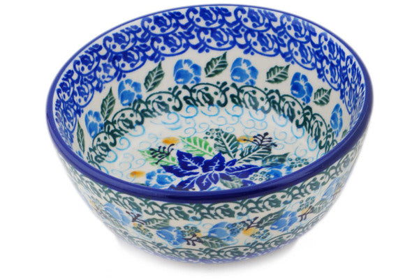This Polish Pottery 5" Bowl - Frosty Flowers is handmade and handpainted by the Ceramika Artystyczna factory in Boleslawiec, Poland.