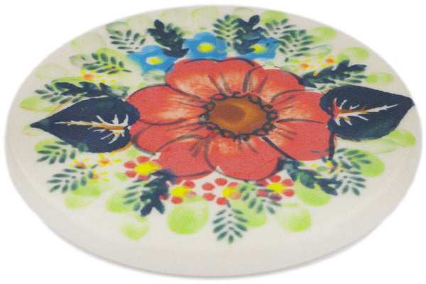 This Polish Pottery 4" Coaster - Bold Red Poppies is handmade and handpainted by the Ceramika Bona factory in Boleslawiec, Poland.