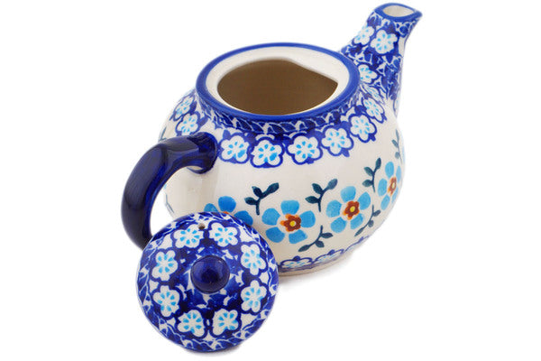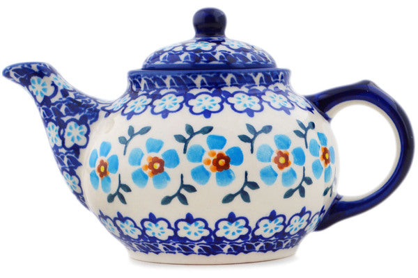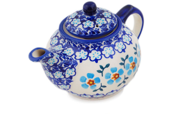 This Polish Pottery 13 oz Tea or Coffee Pot - Blue Chain is handmade and handpainted by the Manufaktura factory in Boleslawiec, Poland.