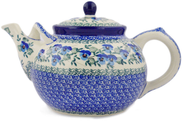 This Polish Pottery 61 oz Tea or Coffee Pot - Blue Pansy is handmade and handpainted by the Ceramika Artystyczna factory in Boleslawiec, Poland.
