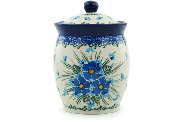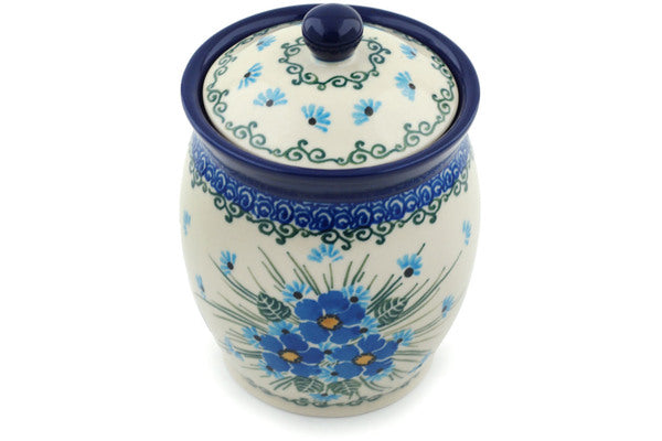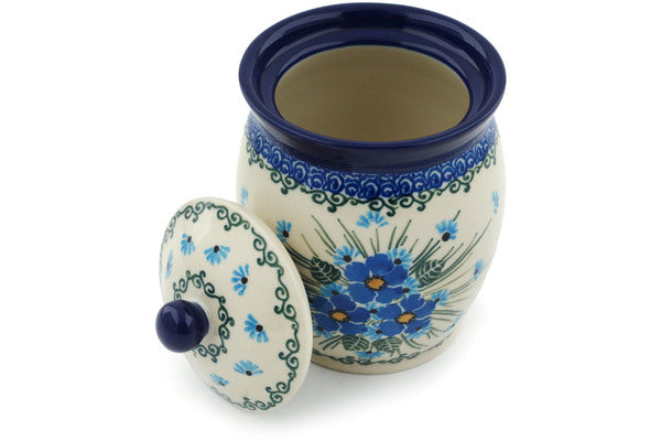 This Polish Pottery 5" Jar with Lid - Forget Me Not is handmade and handpainted by the Ceramika Artystyczna factory in Boleslawiec, Poland.