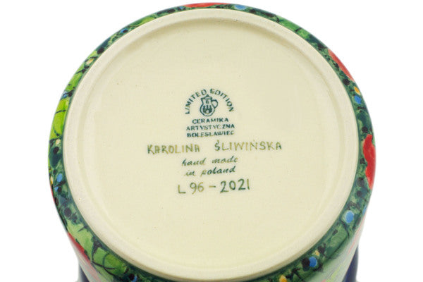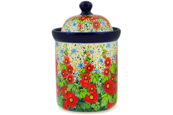 This Polish Pottery 8" Cookie Jar - Hollyhocks is handmade and handpainted by the Ceramika Artystyczna factory in Boleslawiec, Poland.