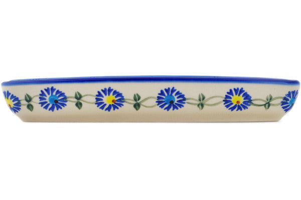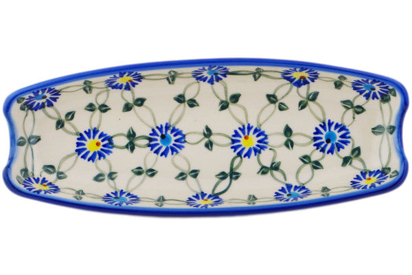 This Polish Pottery 9" Corn Tray - Blue Thistle Beauty is handmade and handpainted by the Ceramika Bona factory in Boleslawiec, Poland.