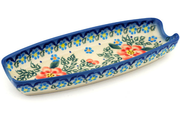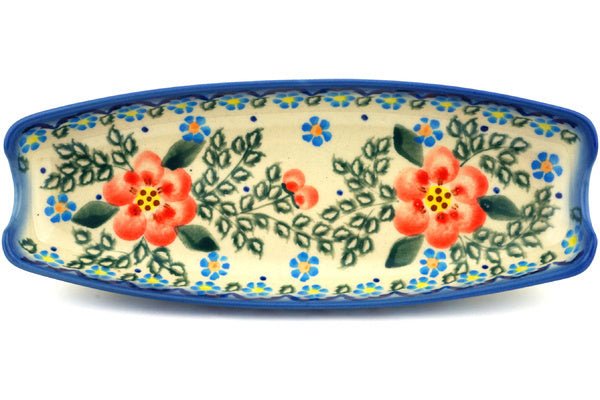 This Polish Pottery 9" Corn Tray - Peach Tudor Rose is handmade and handpainted by the Ceramika Bona factory in Boleslawiec, Poland.