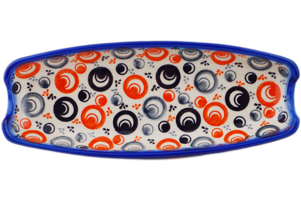 This Polish Pottery 9" Corn Tray - Red Peacock Eye is handmade and handpainted by the Ceramika Bona factory in Boleslawiec, Poland.