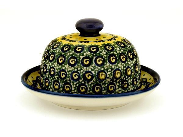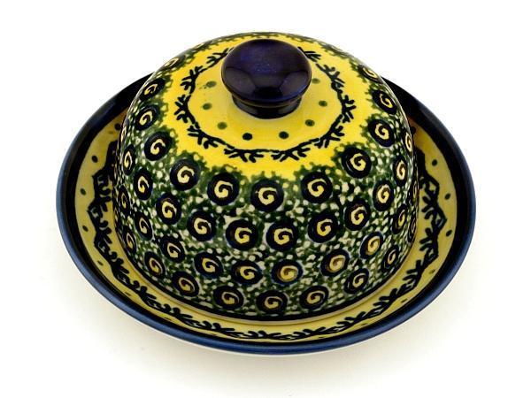 This Polish Pottery 5" Dish with Cover - Peacock Bumble Bee is handmade and handpainted by the Zaklady Ceramiczne factory in Boleslawiec, Poland.