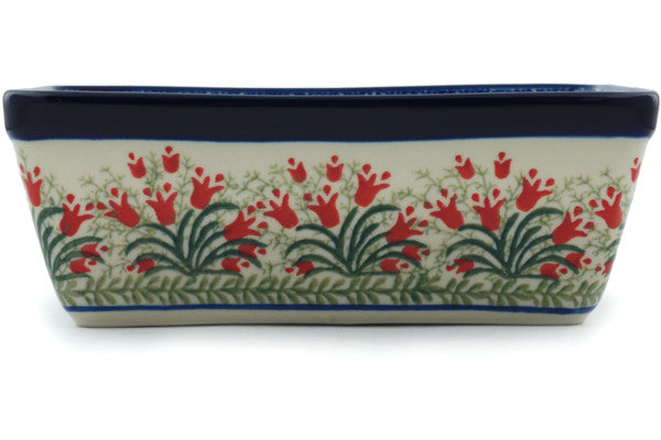 This Polish Pottery 8" Rectangular Baker - Crimson Bells is handmade and handpainted by the Ceramika Artystyczna factory in Boleslawiec, Poland.