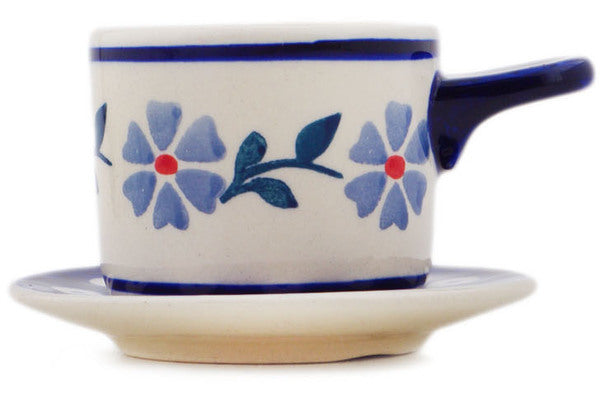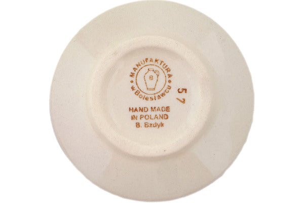 This Polish Pottery 2 oz Cup - Peacock Forget-Me-Not is handmade and handpainted by the Manufaktura factory in Boleslawiec, Poland.