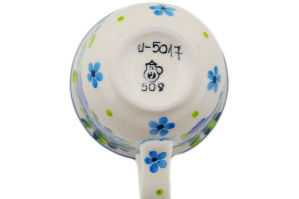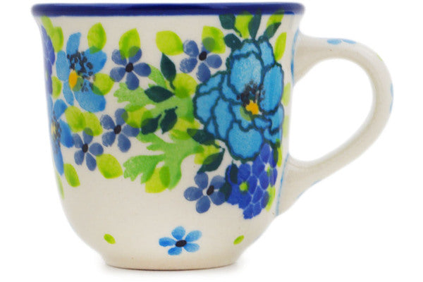 This Polish Pottery 2 oz Espresso Cup - Blue Kissed Petals is handmade and handpainted by the Ceramika Artystyczna factory in Boleslawiec, Poland.