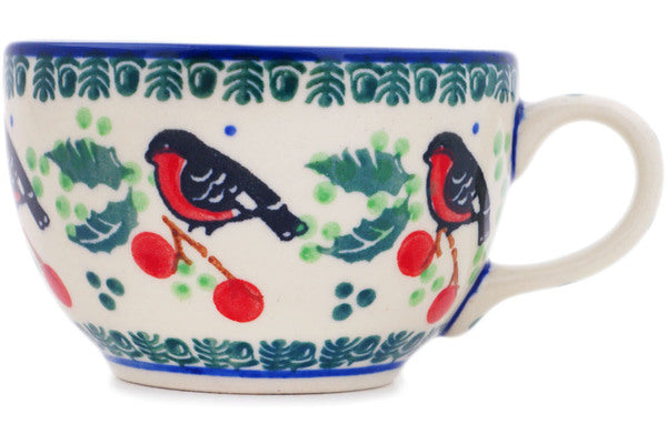 This Polish Pottery 3 oz Cup - Holly Robin is handmade and handpainted by the Ceramika Artystyczna factory in Boleslawiec, Poland.