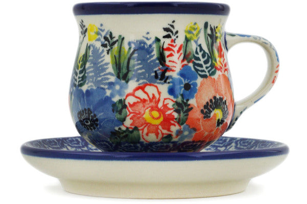 This Polish Pottery 3 oz Espresso Cup with Saucer - Touch Of Beauty is handmade and handpainted by the Ceramika Artystyczna factory in Boleslawiec, Poland.