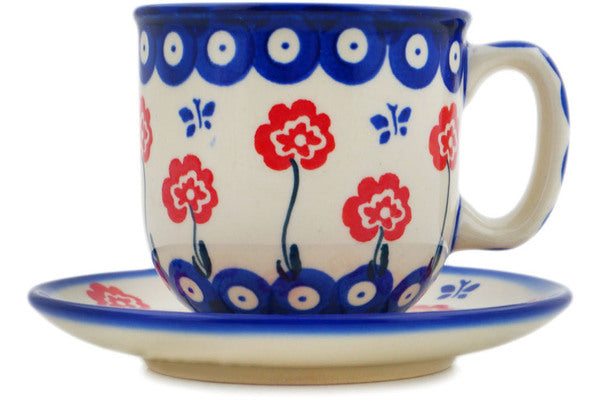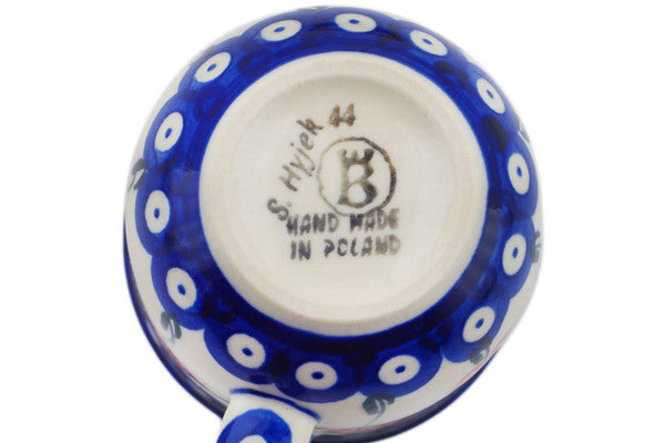 This Polish Pottery 7 oz Cup with Saucer - Blue Eye Spring is handmade and handpainted by the Ceramika Bona factory in Boleslawiec, Poland.