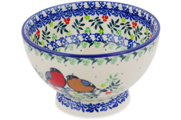 This Polish Pottery 5" Bowl with Pedestal - Robin & Wren is handmade and handpainted by the Ceramika Artystyczna factory in Boleslawiec, Poland.