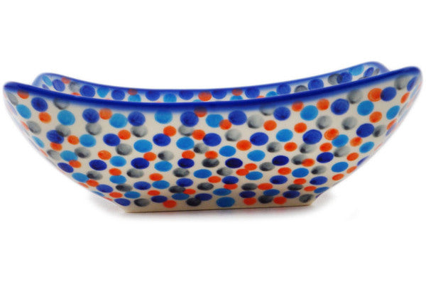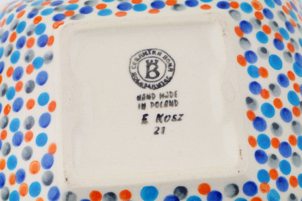 This Polish Pottery 8" Square Bowl - Polka Dot Frenzy is handmade and handpainted by the Ceramika Bona factory in Boleslawiec, Poland.